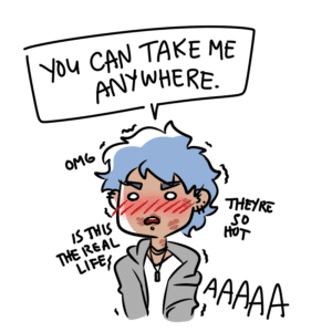 (tfw you’re in a house party & just hiding out in the bathroom but two hot strangers barge in while making out & somehow think ur cute & then ask if u wanna join)