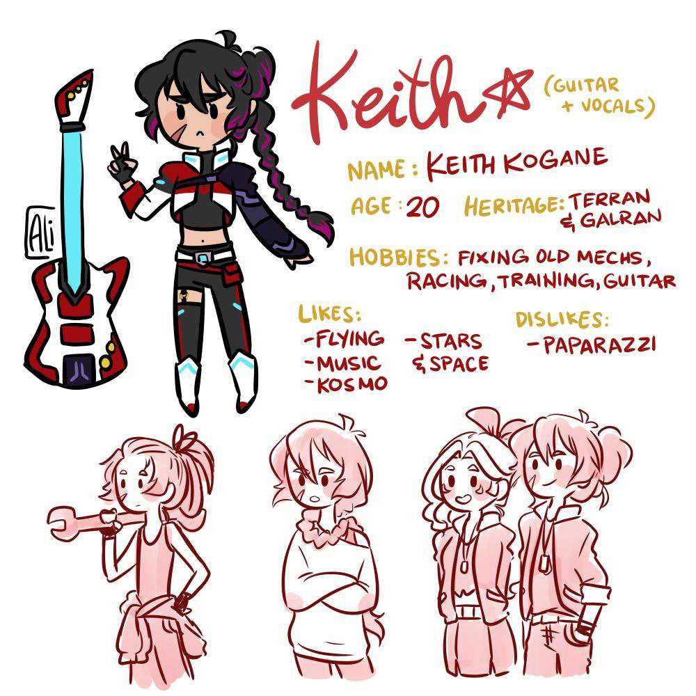 - keith’s pink streaks are natural. he got it from mom. he can shift between both galran & human form but the streaks are a constant somehow.