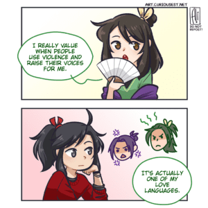 he may or may not have committed arson when someone teased his cousin once.Β he & his fiancee are together for fun and revenge. if u can read what iβve written about him in my brain youβd be calling him a blorbo or a meow meow or whatever they call sexy fictional men who has committed war crimes these days.