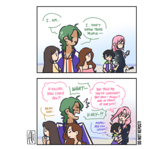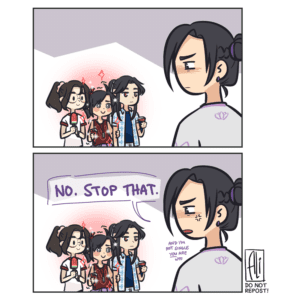 long time no OC here’s ardeth and his twin baby cousins nyle and edlin, one of whom he’s… very… attached to.