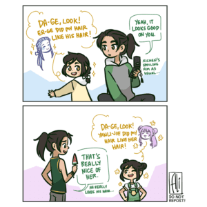 just some quick & messy domestic sangcheng doodles from my ‘come home to my heart’ (homemade) au series!