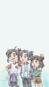 i know no one else has seen this anime but here’s my warm-up doodle i had an urge to draw cute outfits for these 3 kids and that’s in progress…. but tbh they always look so adorable in their uniform