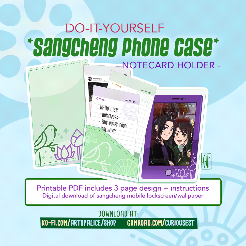 A useful lil phone-inspired mini folder w lil sangcheng-themed notecards.