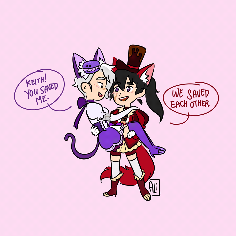 - keith’s pink streaks are natural. he got it from mom. he can shift between both galran & human form but the streaks are a constant somehow.
