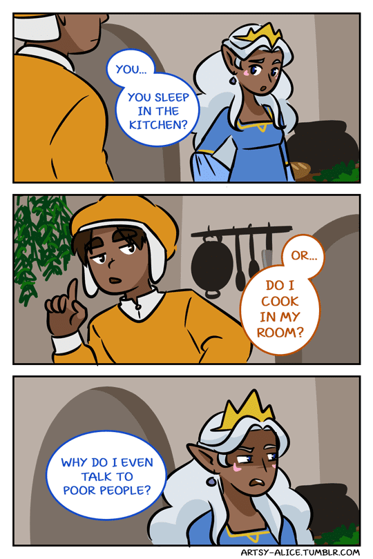 “Oh, Shiro, that sounds awful. But look around! I live in a castle! And you know what I’ve learned about myself? I REALLY LIKE STUFF. I mean, why would I give all this up to get fat and pregnant and grow my own food?”