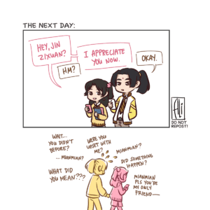 mianmian has some interesting (confusing) interactions with wei wuxian and hanguang-jun